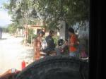 Maybe only a meter wide but with a pretty prominent place warning of the high current. I my condition I didnt know if I was able to jump over it. And with my wet shoes i wasn’t sure if my boots would prevent me getting an electric shock. So I was cold, freezing actually. Pretty close to everything i was dreaming of all day but at the same time lightyears away. I tried to hitchhike but i guess i was just a pretty scary figure standing there trying to hitch a ride. The few cars that came didn’t stop. Not a single car for 30min. When a VW bus approached i was pretty desperate and just blocked their way by standing in the middle of the street. They stopped and i explained my misery. They thought it was pretty funny but agreed to let me ride on the foot hold of the big sliding door. So finally I was surfing into the promised land.